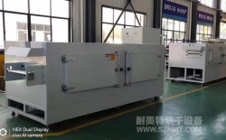 粉末水份烘干隧道式烘干爐主要技術參數 1、內膽尺寸:加熱區長12000*寬1000*高100mm; 2、外形尺寸(約):總長16500*高2000*寬1230mm;進料部分長2000mm,烘干部分長12000mm,分...